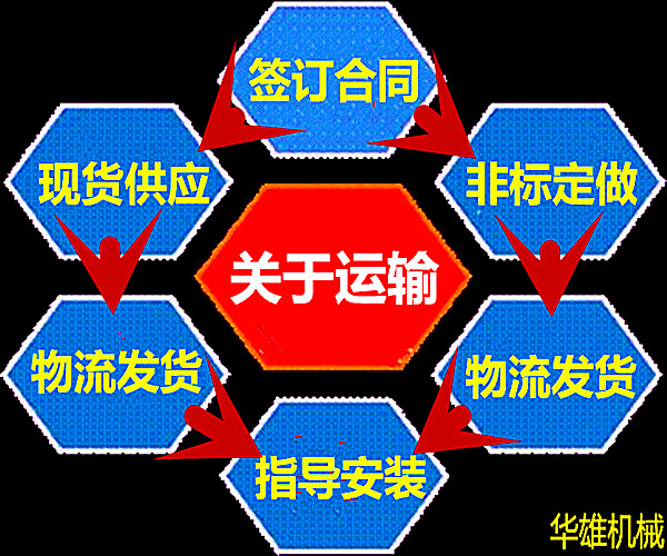 華雄機械對于常規(guī)產品現(xiàn)貨供應,當天訂貨,當天發(fā)貨,購買便捷。我公司按照合同規(guī)定的時間、地點,把貨物運輸?shù)侥康牡?。貨物托運后,我公司按照物流變更隨時通知收貨人。對于非標定制,我公司在預定工期內完工之后及時通知客戶,如客戶有指定物流或快遞,我們會按照客戶要求發(fā)貨,如果客戶無特殊制定物流或快遞,我公司默認德邦物流發(fā)貨。